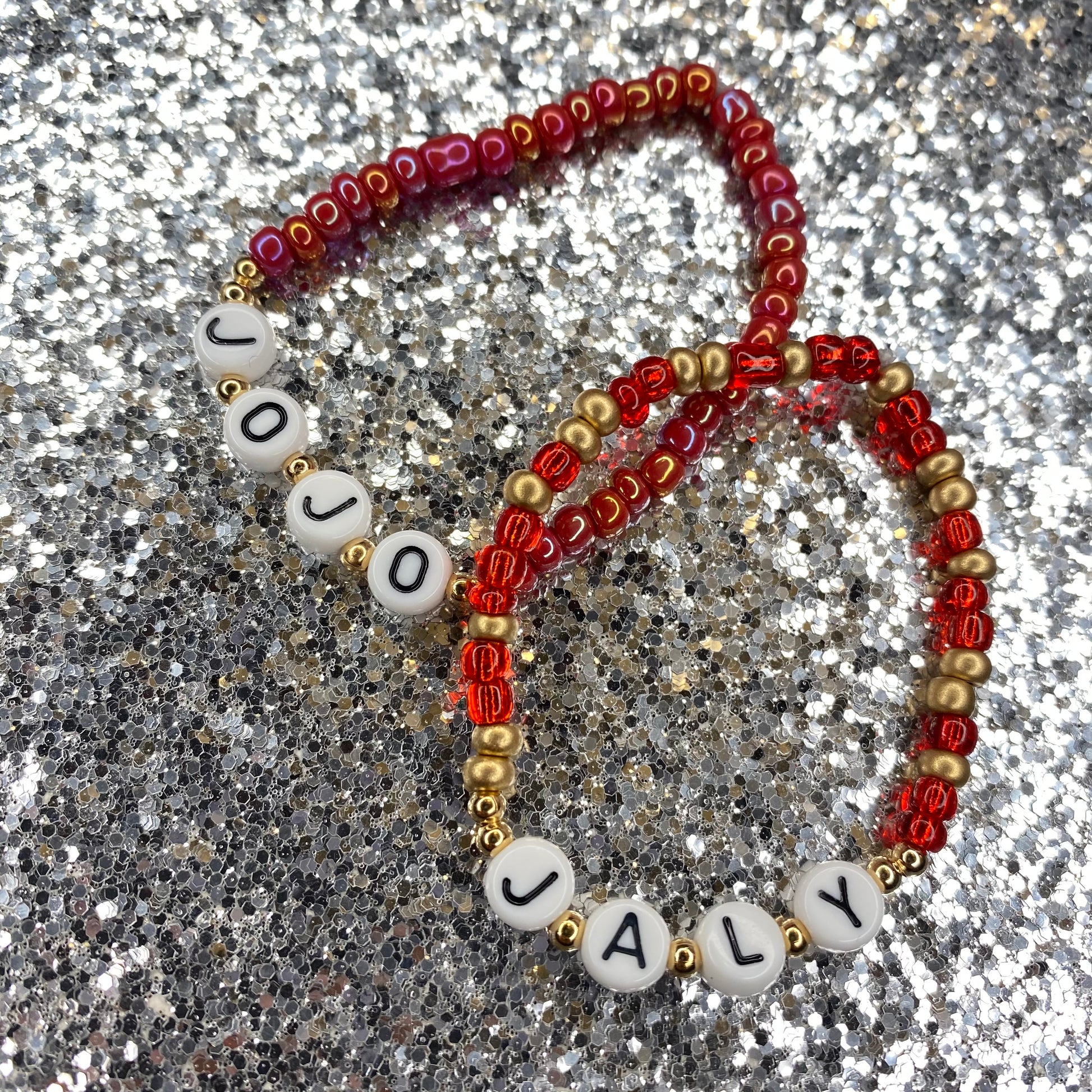These are customized friendship bracelets. You can buy one for your friends and just one for yourself! Available for infants and toddlers as well for a cute Mommy & Me, Daddy & Me, or Both!